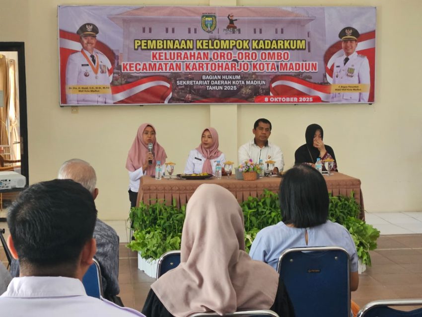 Madiun – Bagian Hukum Sekretariat Daerah Kota Madiun menyelenggarakan kegiatan Pembinaan Kelompok Keluarga Sadar Hukum (Kadarkum) di Kelurahan Oro Oro Ombo. Kegiatan ini menghadirkan narasumber Bapak Ibda Ibnu Umar dari Polres Kota Madiun dan Ibu Dian Mega dari Pengadilan Negeri. Pembinaan ini bertujuan meningkatkan kesadaran serta pemahaman hukum masyarakat agar tercipta lingkungan yang aman, tertib,…